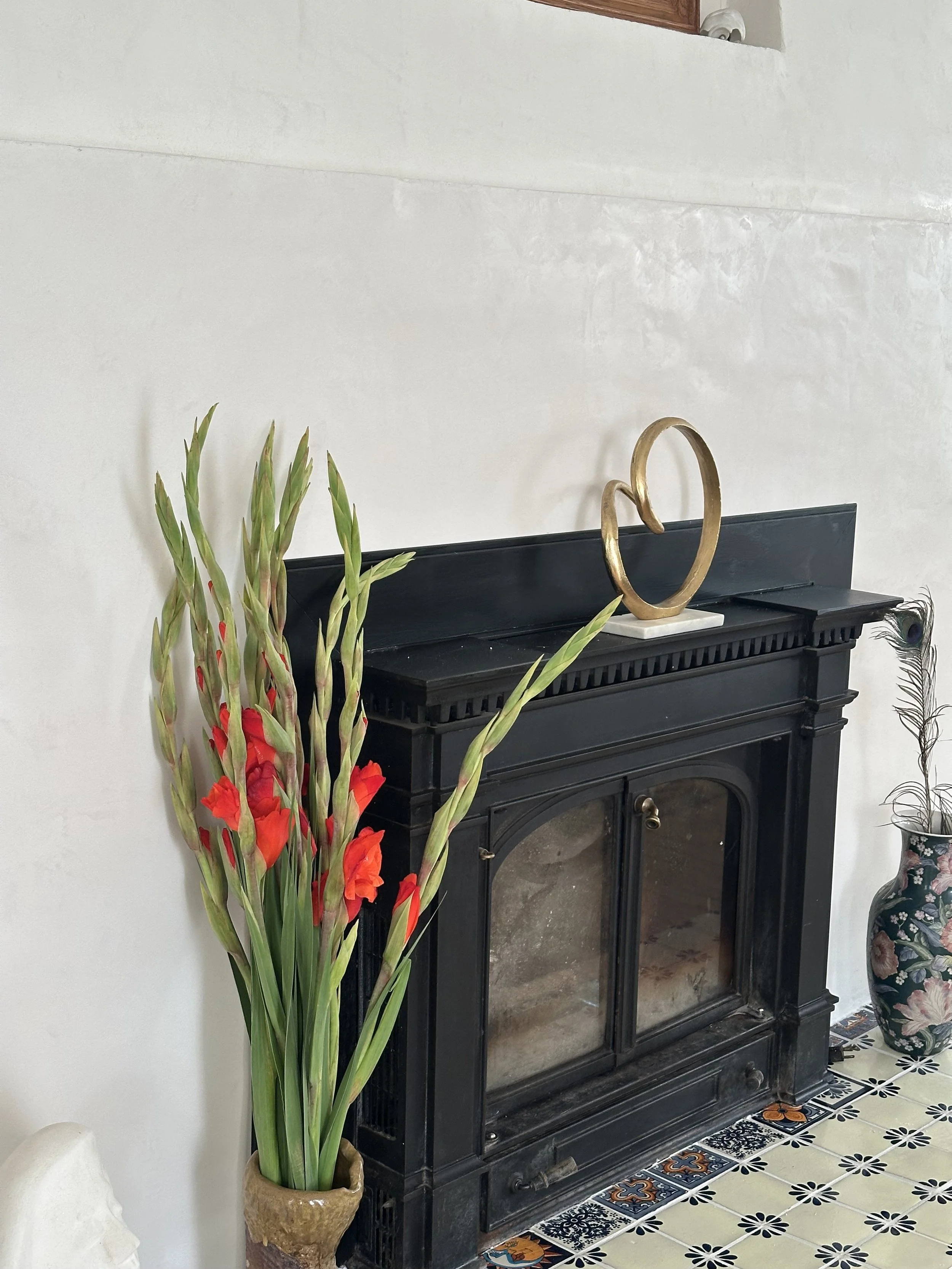 An original brick fireplace built in 1895, recovered with lime plaster. Most certainly the centerpiece of the room, the lime plaster’s natural presence is warm with a bright luster.